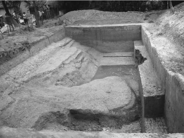另一城址为草鞋村汉城址。这个地点于1980年代调查发现,1993年公布为县级文物保护单位时,定为“窑址”。发掘的机缘很是巧合,2007年,厦门大学考古专业联系田野实习。报国家文物局,很快就获批准。之后广西师范大学考古与博物馆学方向的几个硕士研究生也加入进来,组成了一支规模不小的考古队。次年,两校老师又率下一届学生继续发掘。这样,在2007年11月至2009年1月,我们对位于遗址西北部的“窑址”共开展了两次大规模发掘,发现了一个西汉晚期至东汉早期的大型手工业作坊,包括炼泥、囤泥、制坯、晾晒设施以及附属建筑等,几乎囊括了整个工艺流程。还发现不少制陶工具,也是作坊的重要证据。2010年5月至6月,合浦县在窑址以北修筑西门江河堤工程时,意外地发现一处大型的建筑遗迹,我们立即进行了抢救性清理。